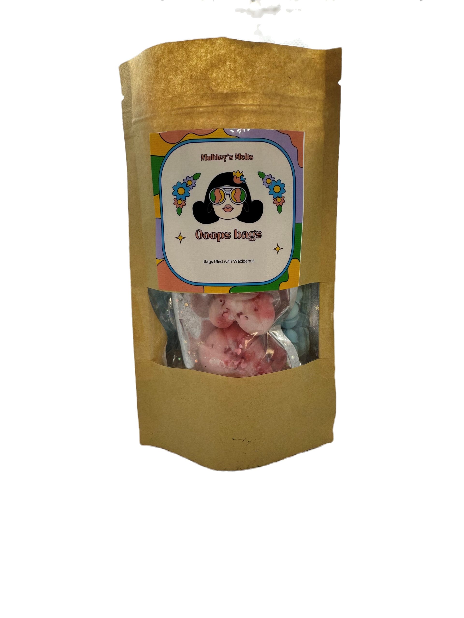 Oops bags, are waxidents that are waxes that maybe have snapped or aren’t the colour I wanted! These are limited to how many waxidents I’ve got at the time! They are 3 wax melts per bag.
